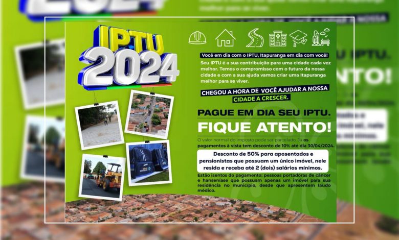 Habitantes de Itapuranga, pague seu IPTU e ajude a nossa cidade a crescer!
